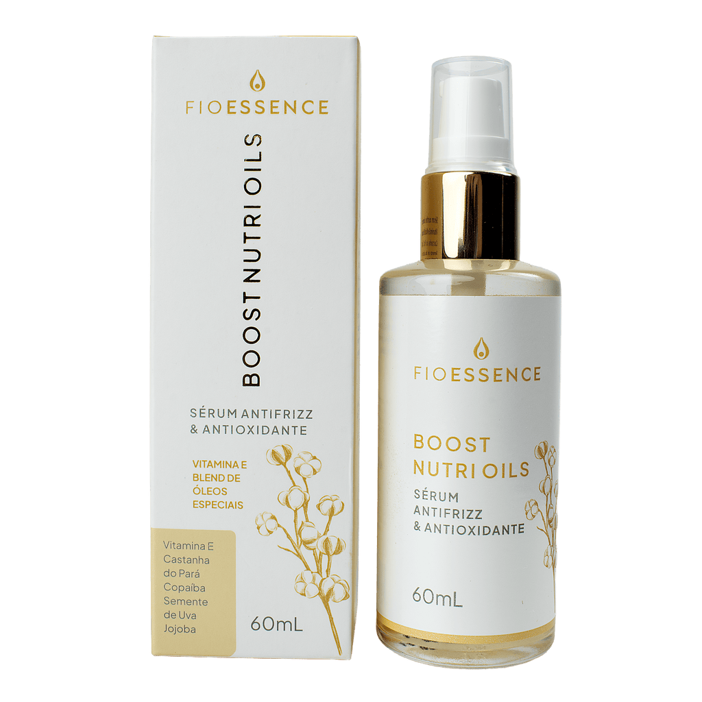 O Boost Nutri Oils é um sérum capilar de tratamento diário que combina Vitamina E a um blend luxuoso de nove óleos vegetais (Castanha-do-Pará, Copaíba, Semente de Uva, Jojoba, Pracaxi, Algodão, Buriti, Gérmen de Trigo e Avelã). Em poucas gotas ele: